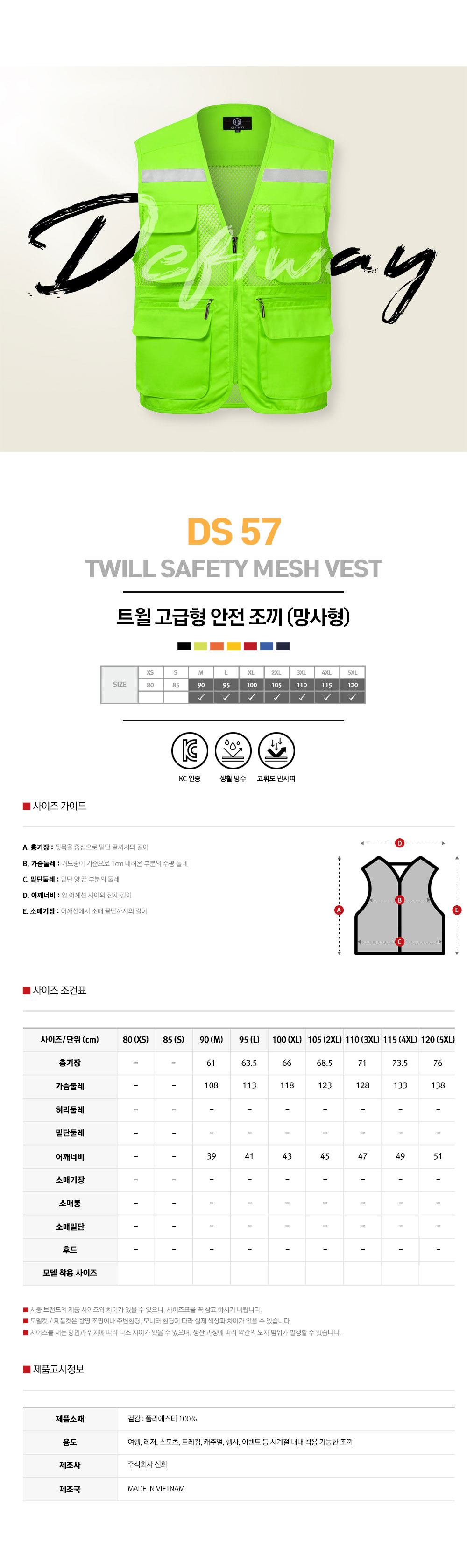 안전조끼 DS57 망사형 [7칼라]