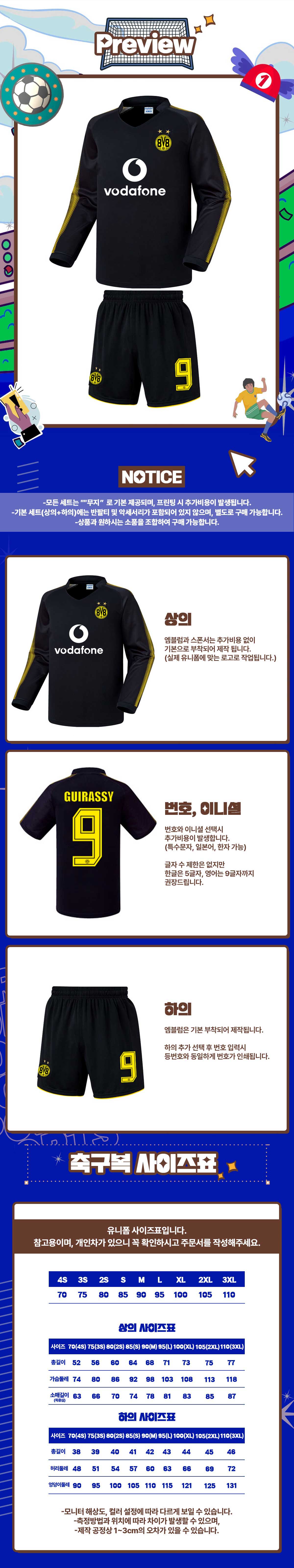 *축구반티는 모두 **특수서체**로 인쇄됩니다.(하단마킹안내참고)