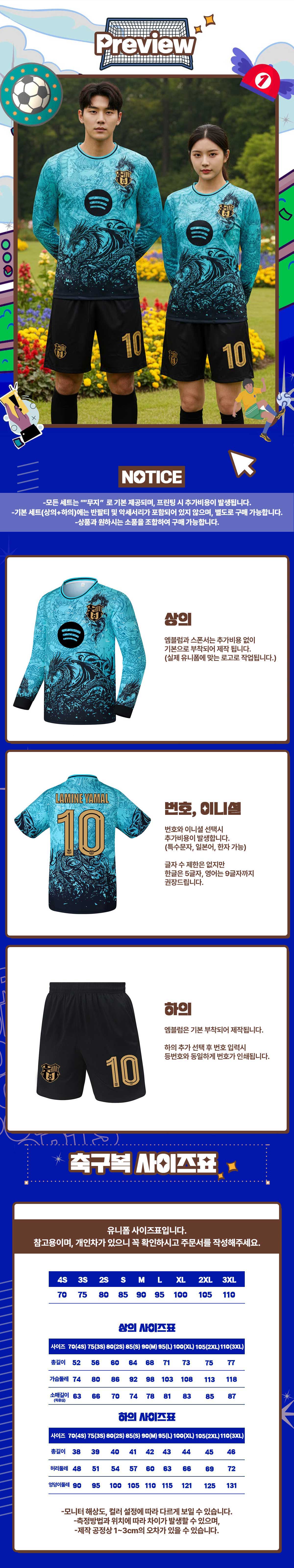 *축구반티는 모두 **특수서체**로 인쇄됩니다.(하단마킹안내참고)